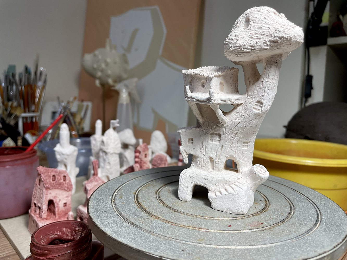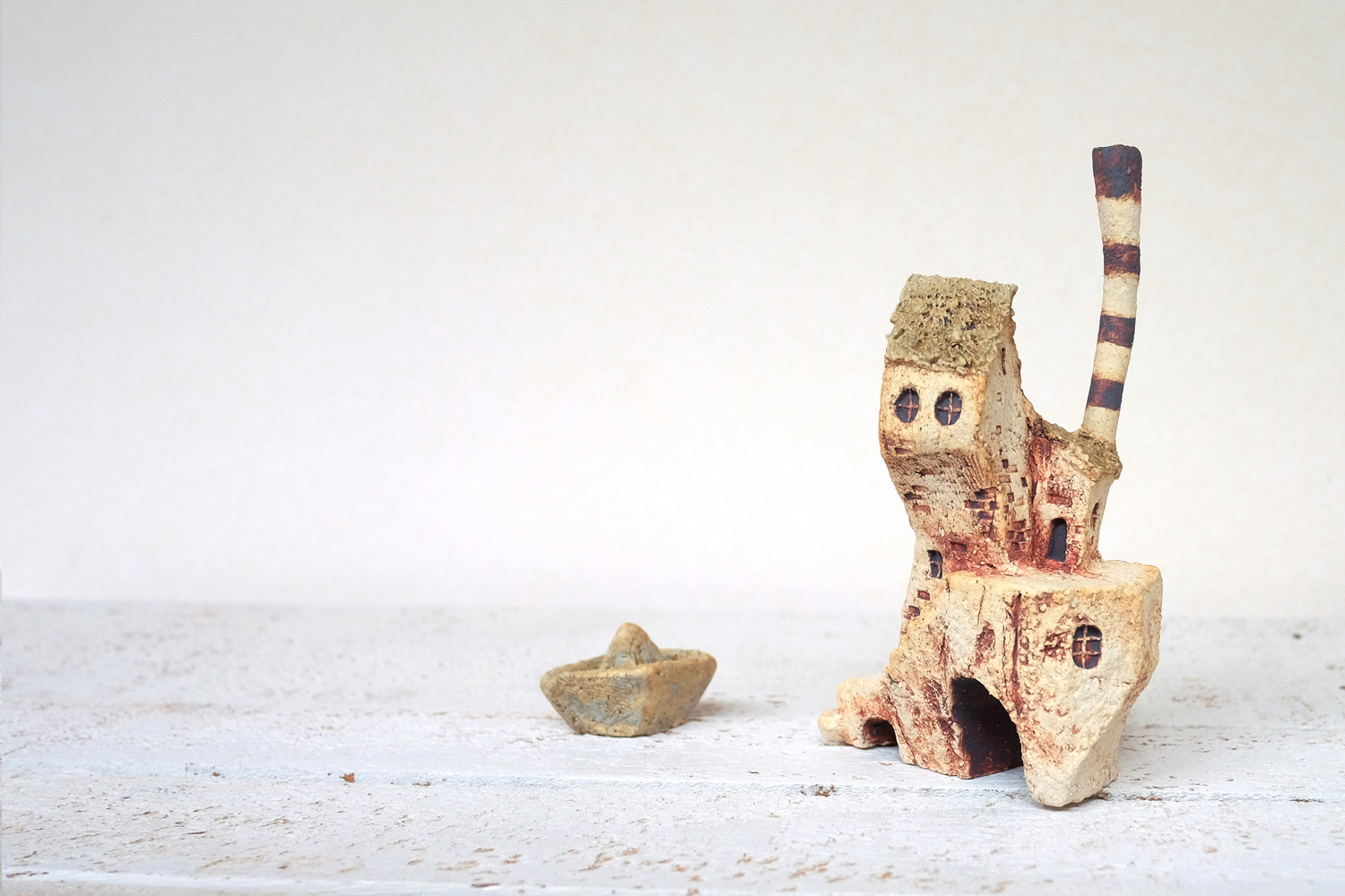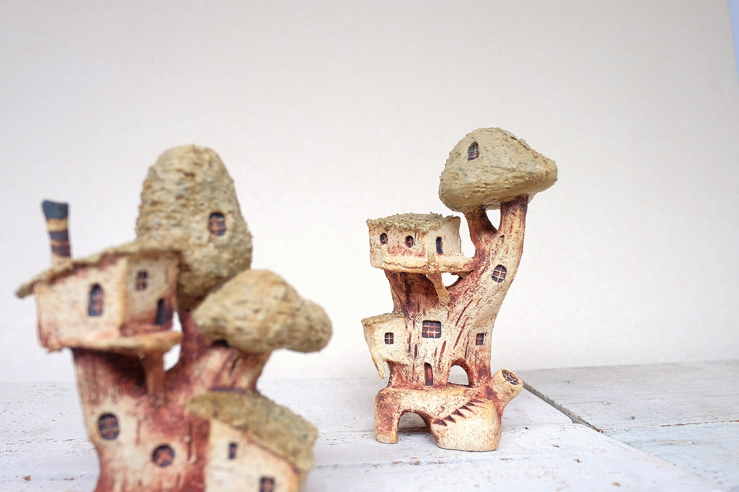 Terry的小屋,保留陶土大部分的原色,與帶有點顆粒、粗糙感的質地,在手上把玩著就能讓堆積著太多日常雜事的心澄清起來;看著就能暫時忘卻生活規範、引發住在裡頭時的無限想像。