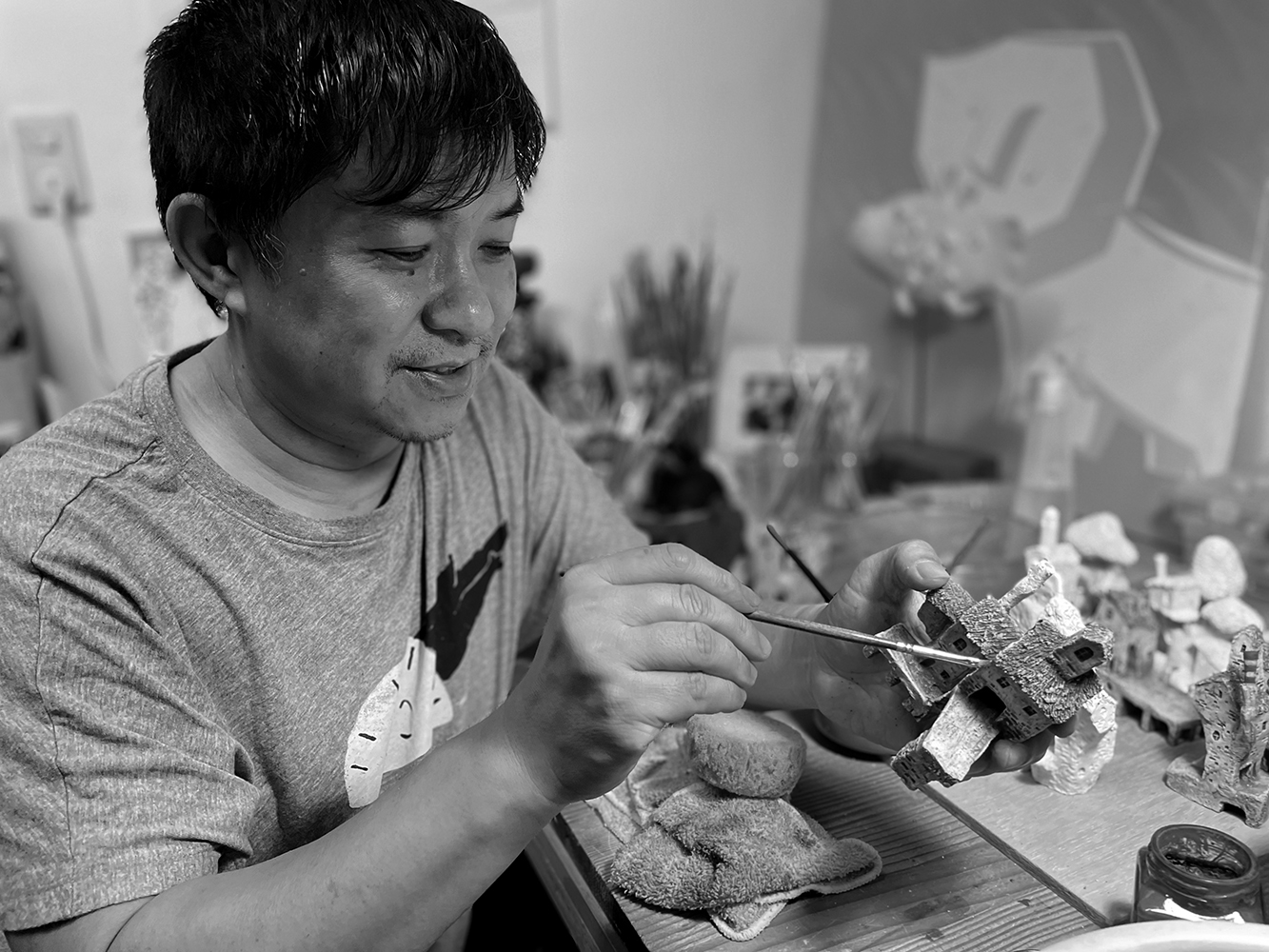 新作的海邊小屋系列與以往不同,細節更多、規模也更大,彷彿能夠偷窺Terry的腦中世界風景。從建築本身就能觸發想像,在腦中出現海、出現城市生活的畫面。彷彿海鳥正在岸邊棲息,日光灑進了屋內的角落。
