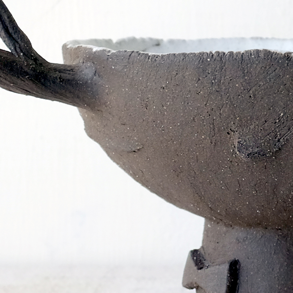 回溯到2015年,早在魚喵被創造出來之前,當時蔡文明對於創作的定義還很模糊,對陶的土性和釉藥掌控也不足,辛苦製作的陶器經常窯燒失敗,不論製陶技術或者創作想法都在摸索期,在這個時期「樹偶小不點」的誕生,並不是為了展現技藝,純粹是嚮往自然而生的作品。