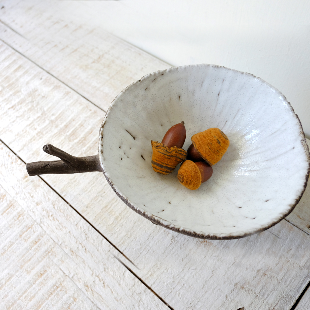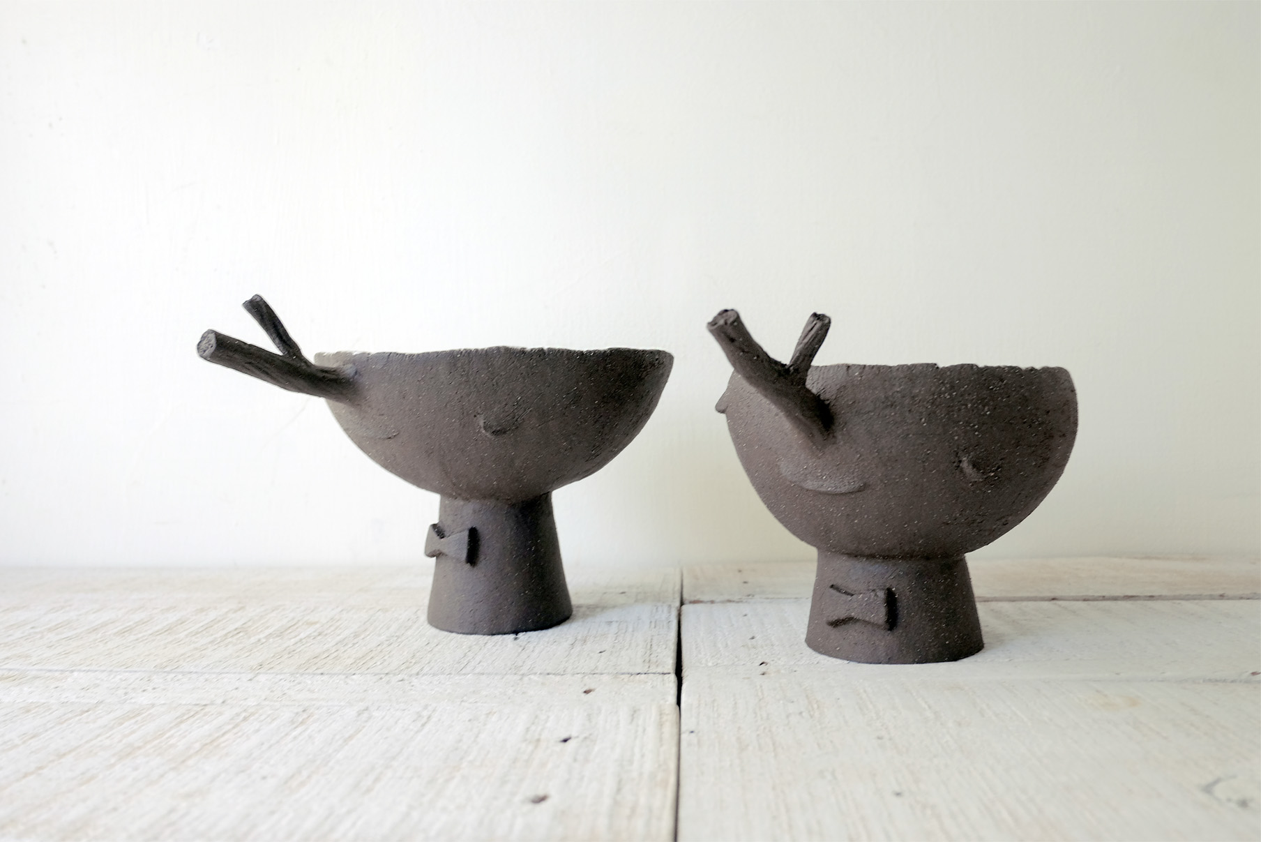 回溯到2015年,早在魚喵被創造出來之前,當時蔡文明對於創作的定義還很模糊,對陶的土性和釉藥掌控也不足,辛苦製作的陶器經常窯燒失敗,不論製陶技術或者創作想法都在摸索期,在這個時期「樹偶小不點」的誕生,並不是為了展現技藝,純粹是嚮往自然而生的作品。